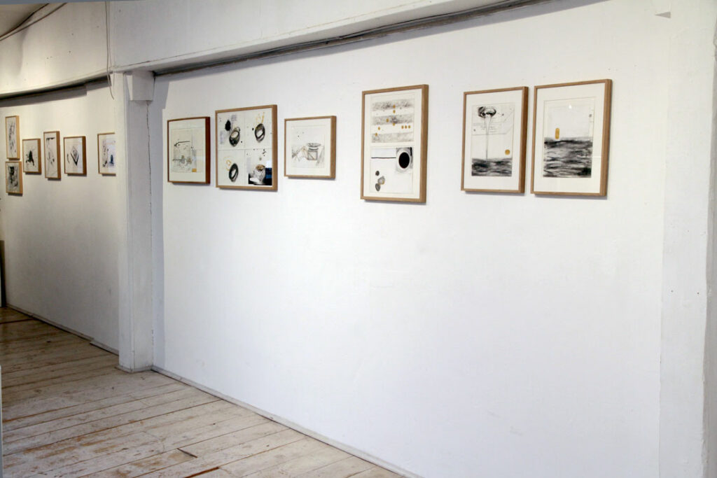AU GRÉ DES ONDES SOUS LE VENT est une exposition sur les ondes vibratoires, sonores et visuelles, leur interdépendance et leurs représentations sous différentes formes, dessins, vidéo, son.