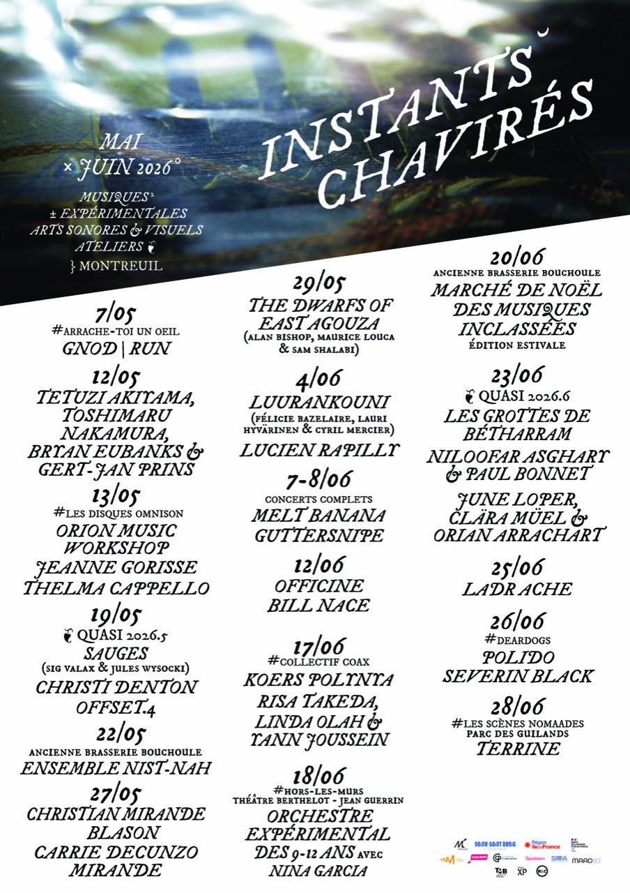 Roro + Andy / Mancipation / David Fenech / Tzii / Lionel Fernandez + Erik Minkkinen / Fred Nipi / Triceps / Sang Foutre / Gaël Angelis / Kasper Toeplitz / Cohérence Cosmique / Dosis Letalis / Fignolet Kapen / Paul Michel + Ruelgo / Jaz Corwin / Yellow Wasabi / Muon S / DJ 144p (Lise Barkas) + DJ 20kHz / Magali Sanheira & Pierre Escot / Orion Music Workshop / Katar6ix / Olivier Lasson / Baron Légion / Emilia Wysocka + Paul Kervegan / [o1 Temp] + Abbatoir / Lauren Rodz / Itywimwy / Arnaud Rivière / Paul Grémare / Nalima Maré / Toco Vervisch / Napalm Jazz / Kro / SimonPh + Hugo Glauque / CRLB aka le grand Noizmak / Cyril Leclerc / Léo Dupleix